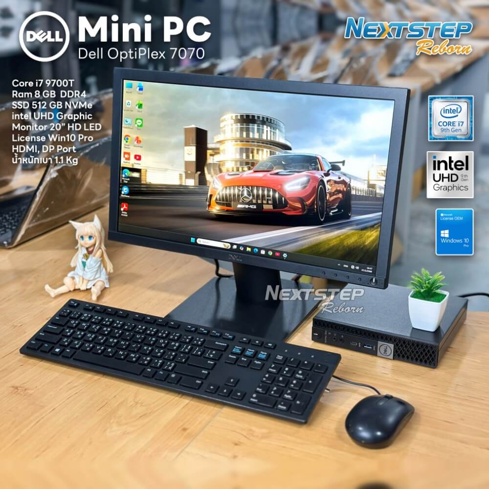 (คอมมือสอง) Mini PC Dell Optiplex 7070 | Core i7 9700T | Ram 8GB | M.2 512GB | Monitor 20″ | License Windows 10 Pro